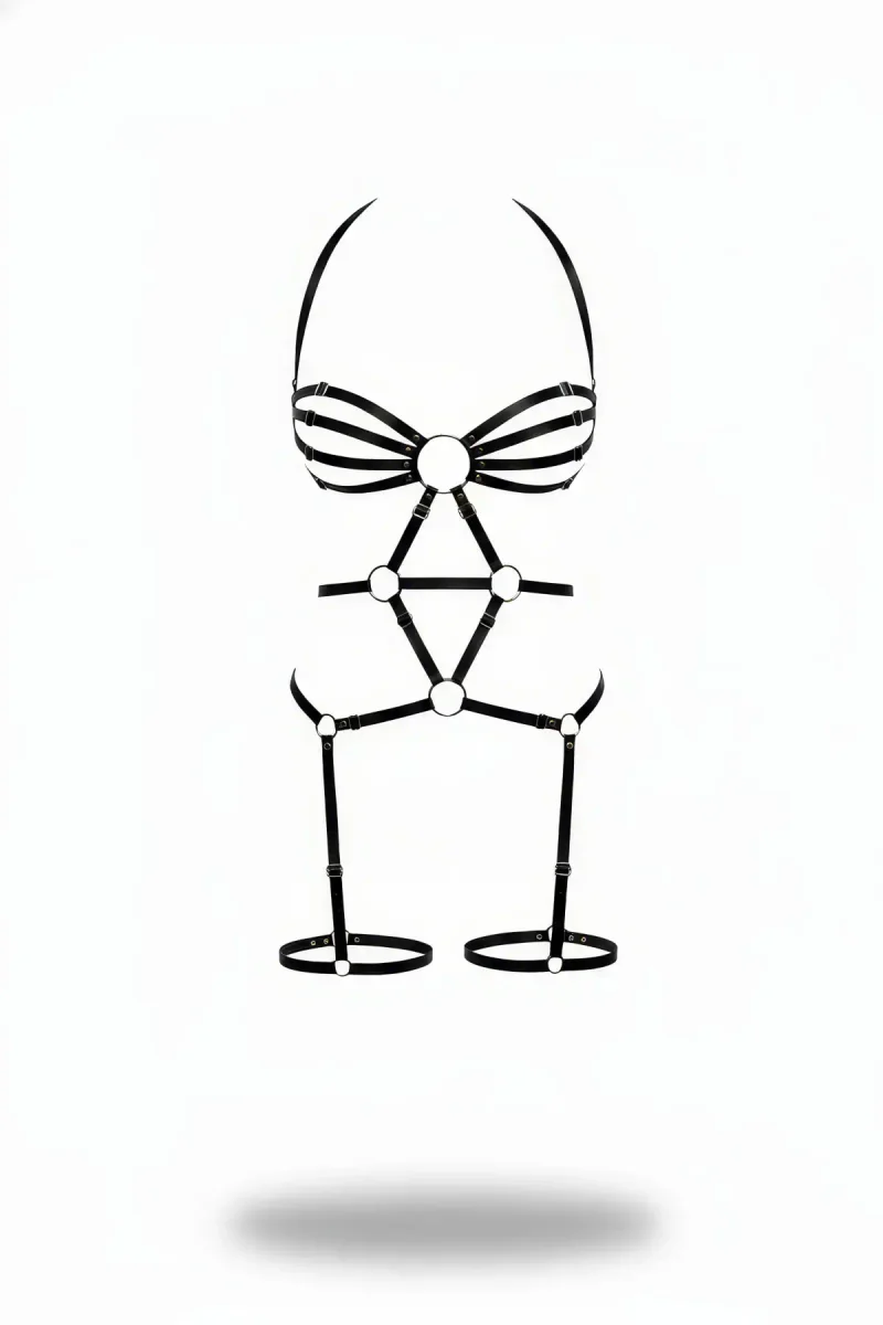 Open Cup Body Harness Lingerie Set with Adjustable Garters