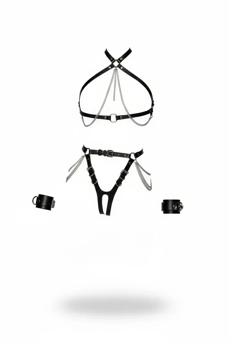 Faux Leather Harness Set with Butt Straps & Cuffs
