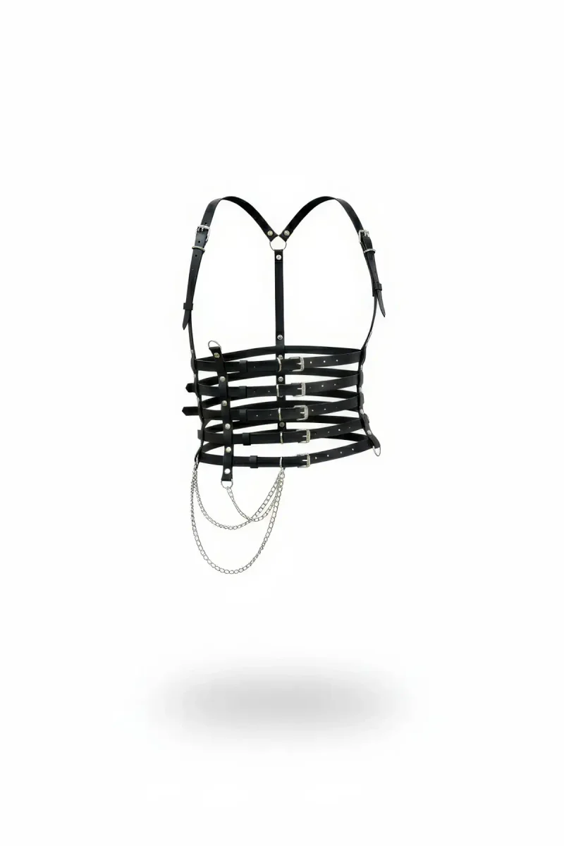 Black Women's Belt Chain Detailed Multiple Buckle Corset - APFT626