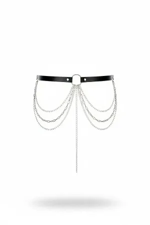 Black Women's Belt Chain Tasseled High Collar Body Accessory - APFT947