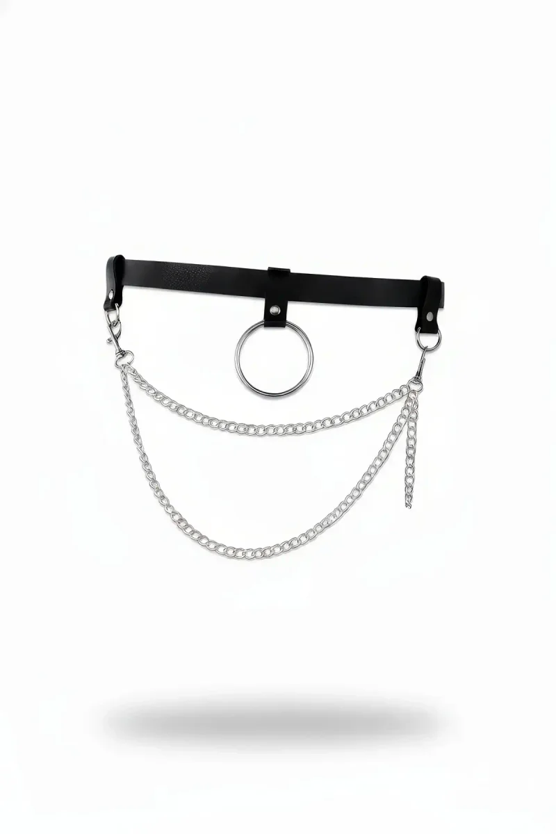 Black Women's Belt & Ring Detailed Body Accessory - APFT628