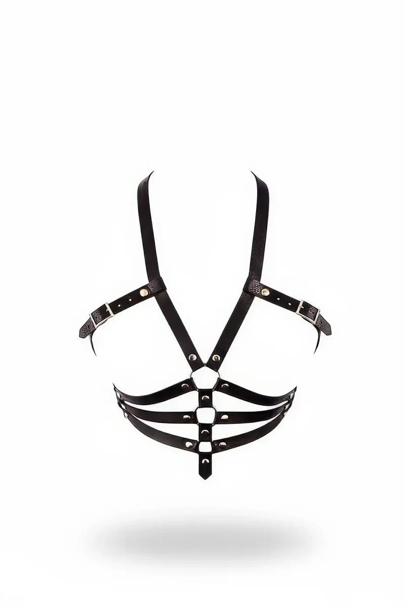 Black Women's Belt Leather Body Harness Accessory with Buckle - APFT32