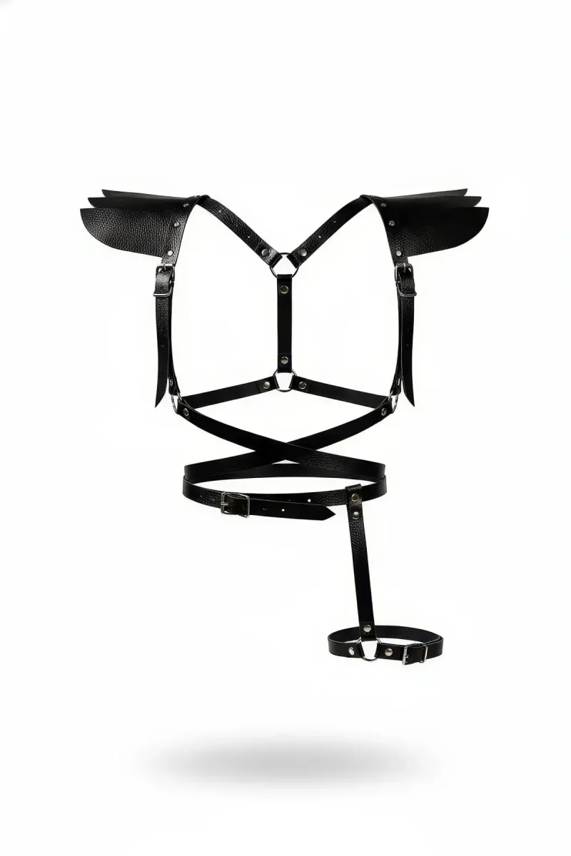Black Women's Belt Shoulder Detailed Multiple Buckle Body Accessory - APFT740