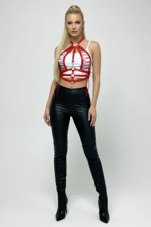 Red Chest Harness for Women with Chains - Faux Leather Body Harness