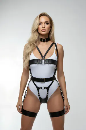 Full Body Harness Lingerie Set - Adjustable Faux Leather