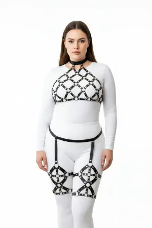 Black Harness Suit with Leather Garter Body Accessory - APFT547