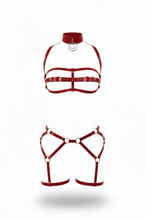 Red Harness Suit Leather Halter Collar Body Belt - APFT272
