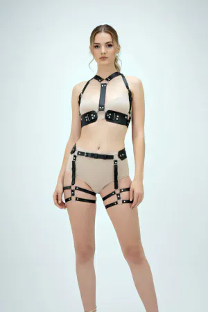 Large Size Black Leather Belt Detailed Harness Skirt Accessory - APFT899