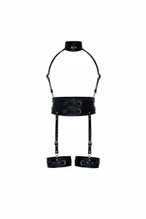 Black Harness Suit with Leather Garter Body Accessory - APFT547