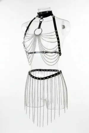 Black Choker with Leather Chain Link Ring Detail - APFT248