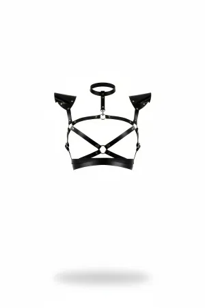 Black Chest Harness Neck Collar with Ring Cross Band Detail - APFT103