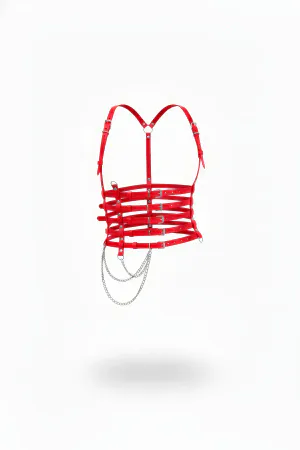 Red Body Harness with Adjustable O-Ring Straps & Garter Detail