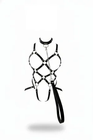 Plus Size Black Women's Leather Harness Belt, Stylish Body Accessory for Dress - APFT15