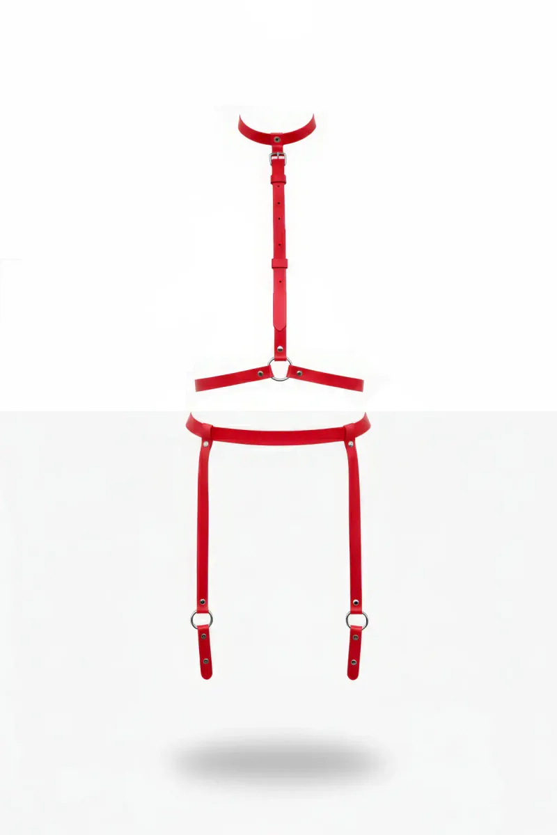Red Harness Suit Leather Halter Collar Body Belt - APFT272