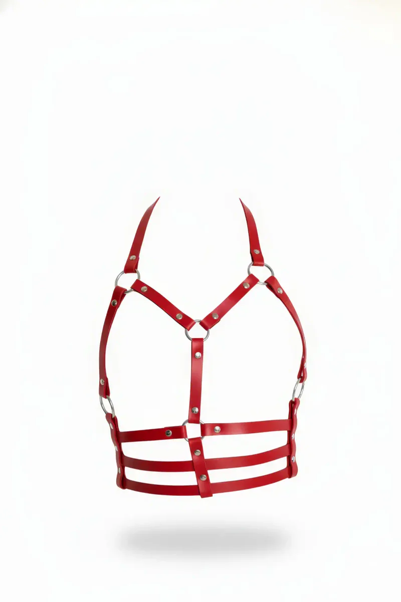 Plus Size Red Women's Belt, Statement Leather Harness Body Accessory - APFT188