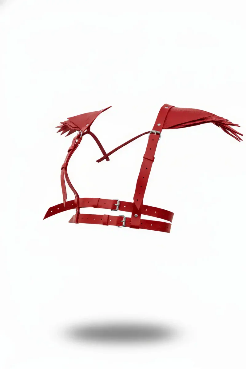 Plus Size Red Women's Belt, Statement Leather Harness Body Accessory - APFT188