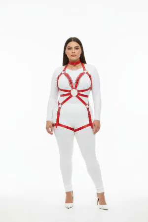 Red Choker Thick Leather Chain Detailed Necklace - APFT282
