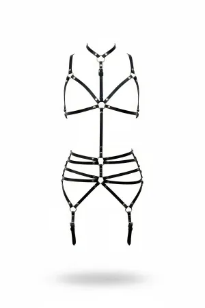 Sexy Body Harness Lingerie Set with Open Cups & Garters