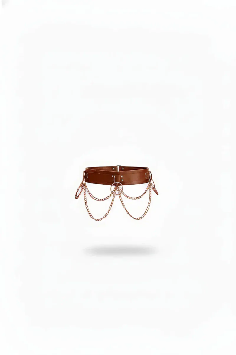 Tan Women's Belt Thick Chain Detailed Waist Accessory - APFT763