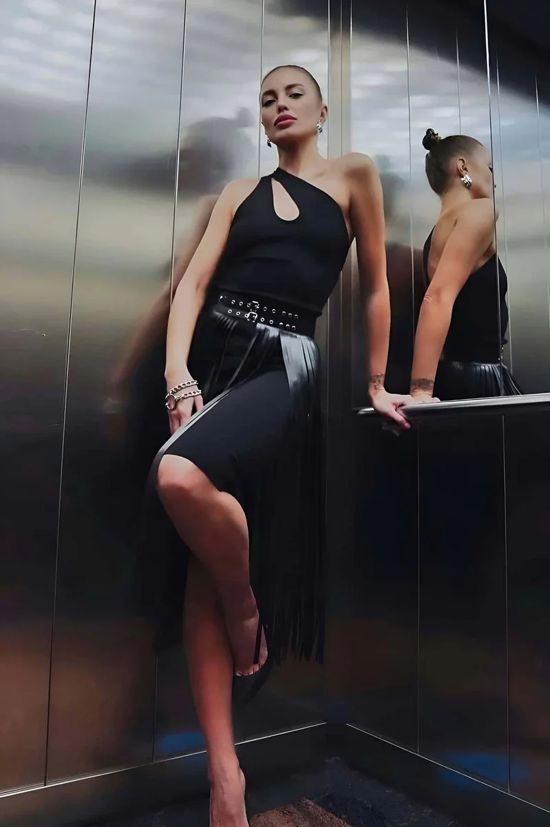 Searching for a stunning black tasseled leather skirt for women? This exquisite black midi leather skirt is your ultimate statement piece, designed to instantly elevate your wardrobe and command attention. Experience unmatched confidence and redefine your fashion narrative with this must-have addition. Don't wait to make it yours; this exclusive piece sells out fast.