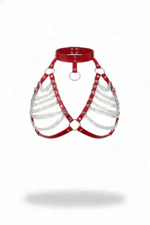 Red Garter Harness with Full Body Leather Buckle - APFT524
