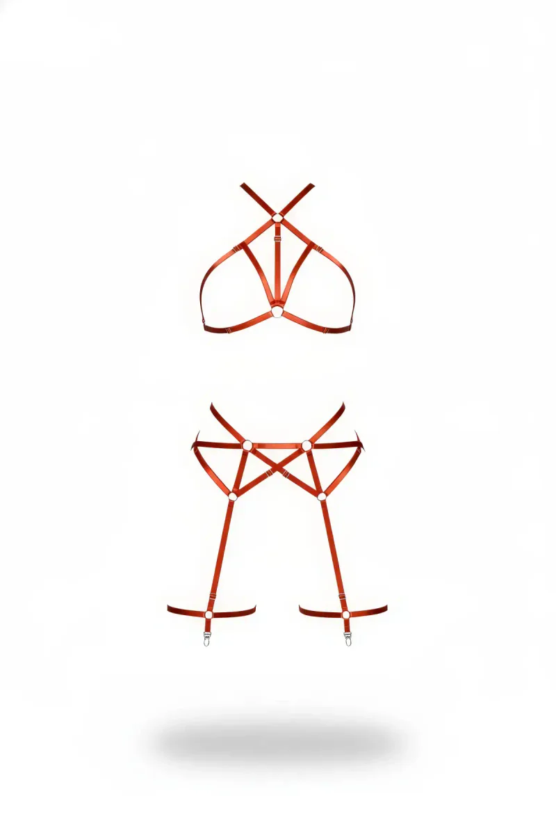 Red Harness Suit Leather Halter Collar Body Belt - APFT272