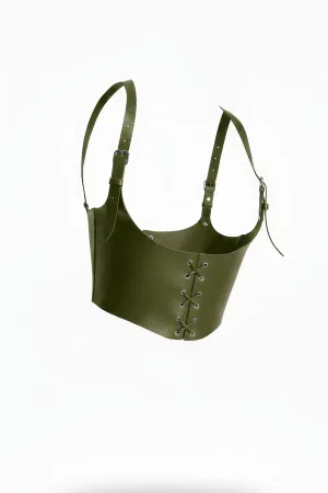 Khaki Women's Belt Wide Corset Type Leather Waist Accessory - APFT622