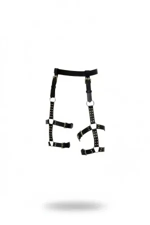 Black Harness Suit with Faux Leather Buckle and Leg Detail - APFT874