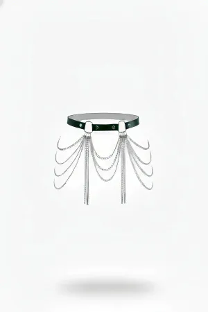 Black Harness Suit Chain Detailed Leather Body Accessory - APFT497