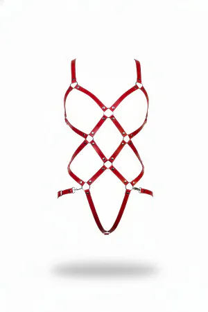 Red Harness Suit Leather Halter Collar Body Belt - APFT272