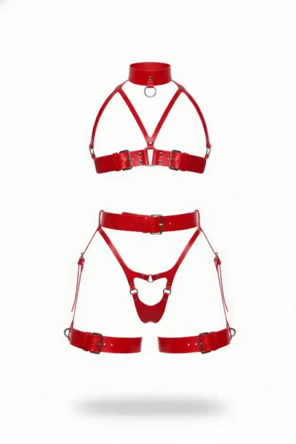 Red Harness Set Faux Leather Body Accessory with O-Ring Detail – SH230