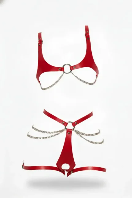 Red Harness Set Leather Body Accessory with Chain Detail – SH1384